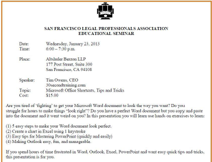 Administrative professional organizations selected Tim on twelve separate occasions to deliver conference and meeting presentations—clear evidence of sustained credibility and practical impact.