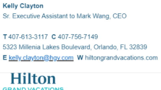 -- Email from Kelly Clayton, Executive Assistant to CEO Mark Wang