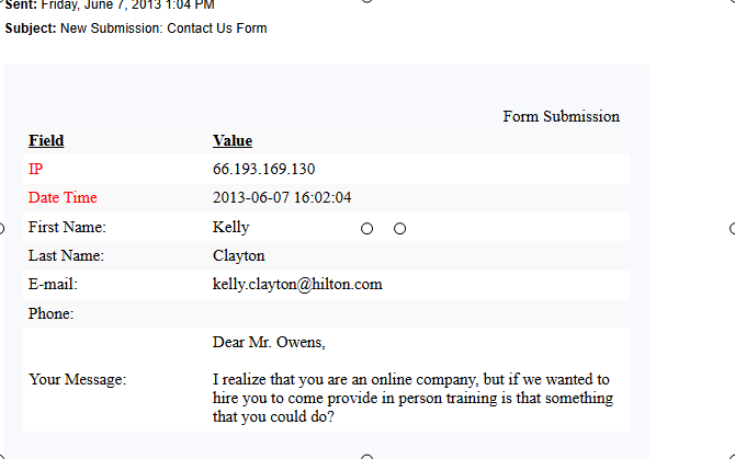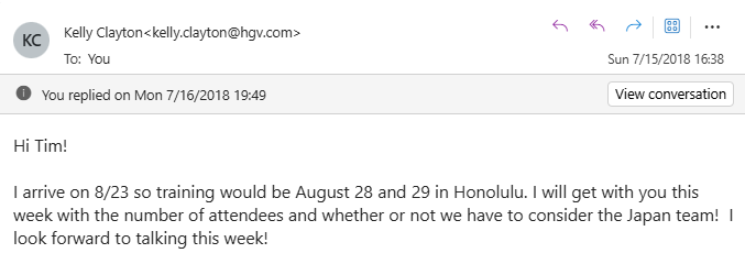 "Hello Tim! How have you been? I wanted to reach out to you because we are planning our 2015 Executive Assistant retreat and would love it if you would conduct training again."